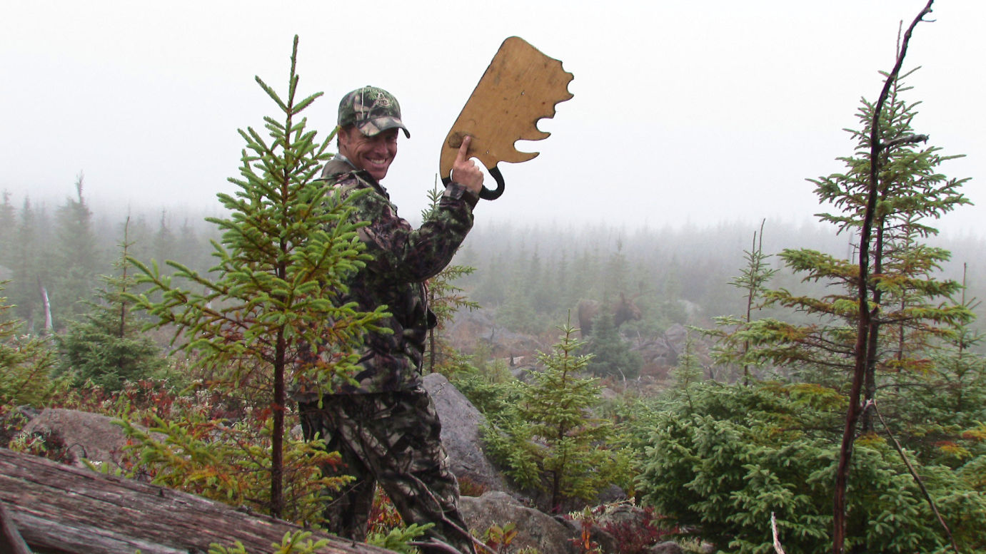 – I am the man! Råber Jonas til Deon, som glad og tilfreds råber tilbage og vifter med den gevirpladen. Deon har løst sin opgave perfekt, og Jonas har her på jagtens næstsidste dag omsider fået opfyldt den drøm, som han mange gange har stået på jagtmesser i Norge og forsøgt at sælge til jagtinteresserede kunder. Nu skal elgen brækkes, inden mørket sætter en stopper for den flotte efterårsdag i vildmarken på Newfoundland.